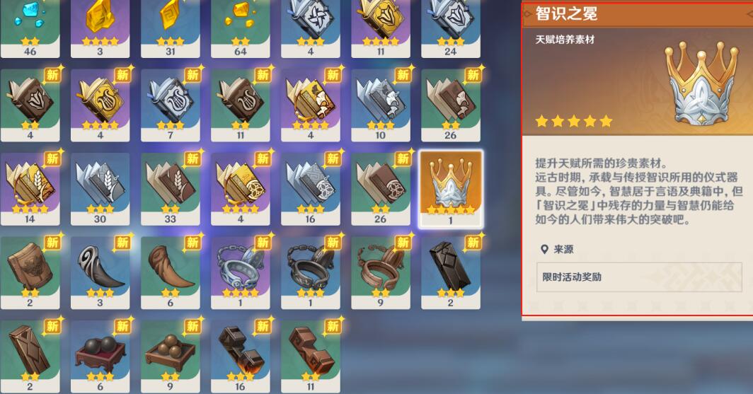 18個(gè)周本材料、3個(gè)智識(shí)之冕。